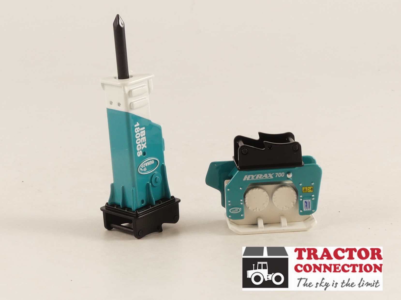 Set met uitrustingsstukken voor de Volvo EWR 150E en Atlas wielkraan van AT Collections. Past aan de S6/S60 snelwissel koppeling (o.a. snelwissel S6/ S60 koppelstuk aan de Atlas 160W, en Volvo EWR 150E of de koppelingen met de Eurosteel toebehoren set met S6/S60 koppelingen zoals de sorteergrijper.
