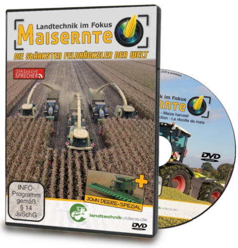 DVD met opnamen van maishakselaars aan het werk in Duitsland. Diverse machines van Claas, John Deere, New Holland en Mengele. Machines vanaf de tachtiger jaren maar ook de machines van dit moment voor de Duitse biogas installaties. Met opnamen van diverse manieren en werktuigen waarmee de enorme maisbulten worden opgebouwd en aangedrukt.
