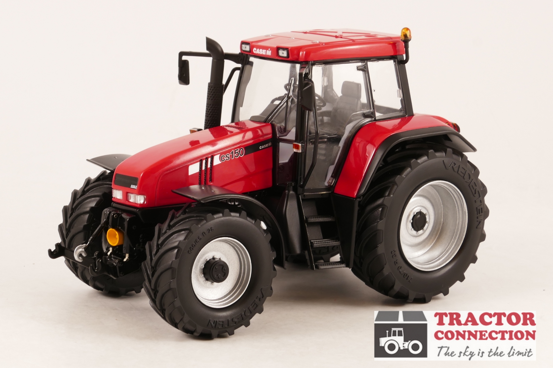 Case IH CS 150 van Marge Models. Mooi gedetailleerde trekker. Volledig van metaal. Fronthef met topstang. Hefinrichtingen en topstangen kunnen bewegen. Heeft een ondertrekhaak met losse pin.