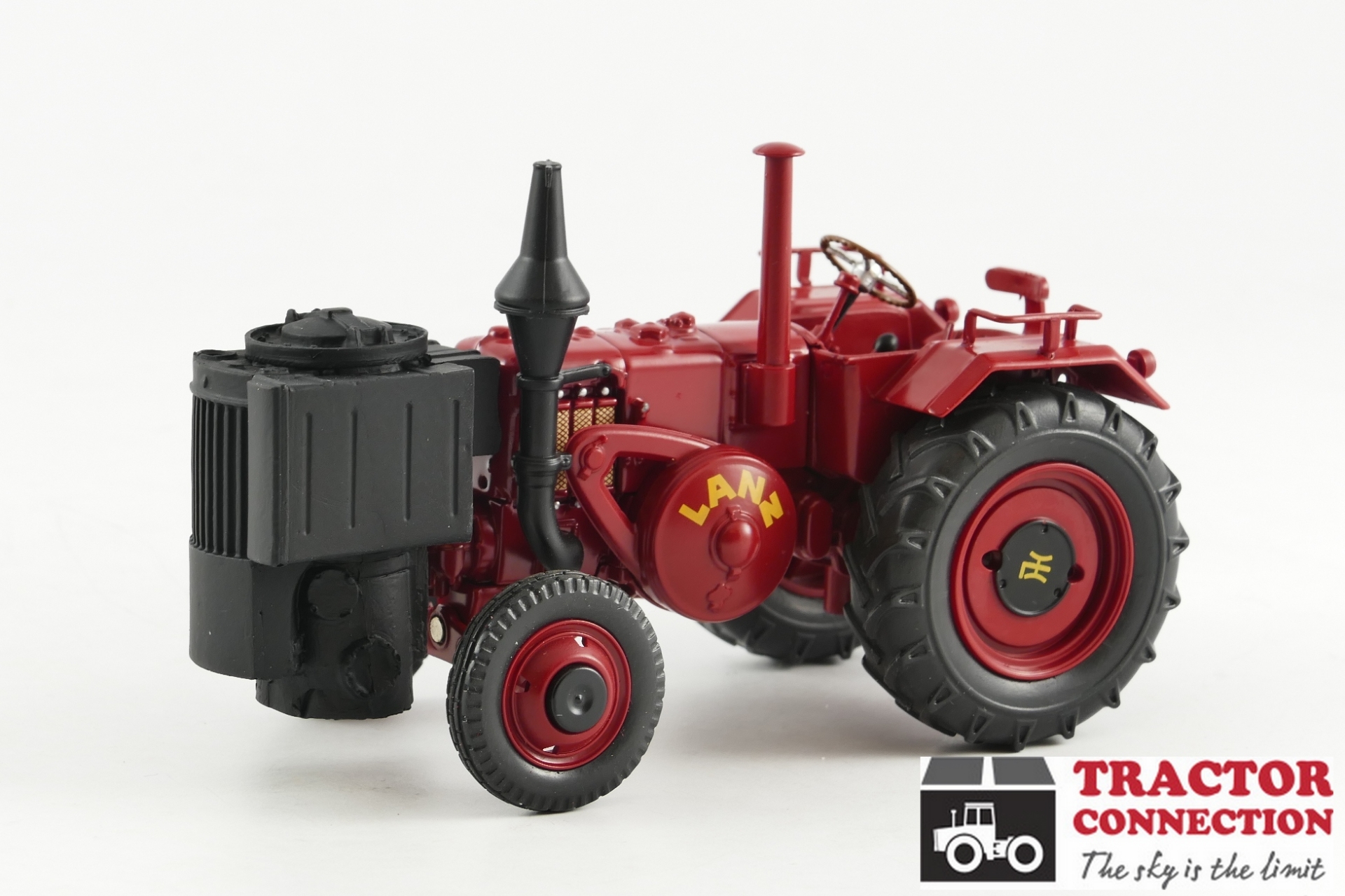 Lanz Ackerbulldog. Een mooi gedetailleerde trekker die volledig van metaal is gemaakt. De voorwielen zijn fuseegestuurd.