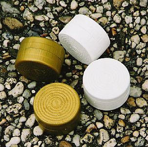 De balen zijn 28 mm breed en zijn 45 mm in doorsnede.Ze worden geleverd per twee, een gewikkelde (wit) en een ongewikkelde baal (bruin).