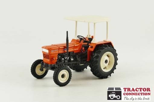 Fiat 640 DT van Replicagri. Een zeer gedetailleerde trekker die overwegend van metaal gemaakt is. Het zonnedak is afneembaar, de klep in de motorkap kan open en de voorwielen zijn fuseegestuurd. Wordt geleverd met afneembare gatenbalk en verstelbare topstang. Het frontgewicht is afneembaar.