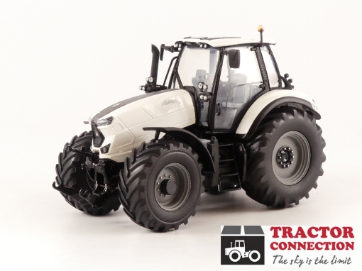 Deutz-Fahr Agrotron 7250 TTV. Zeer gedetailleerde trekker, voorzien van trekhaak en volledige hefinrichting. De voorwielen zijn fusee gestuurd. Spiegels kunnen inklappen.