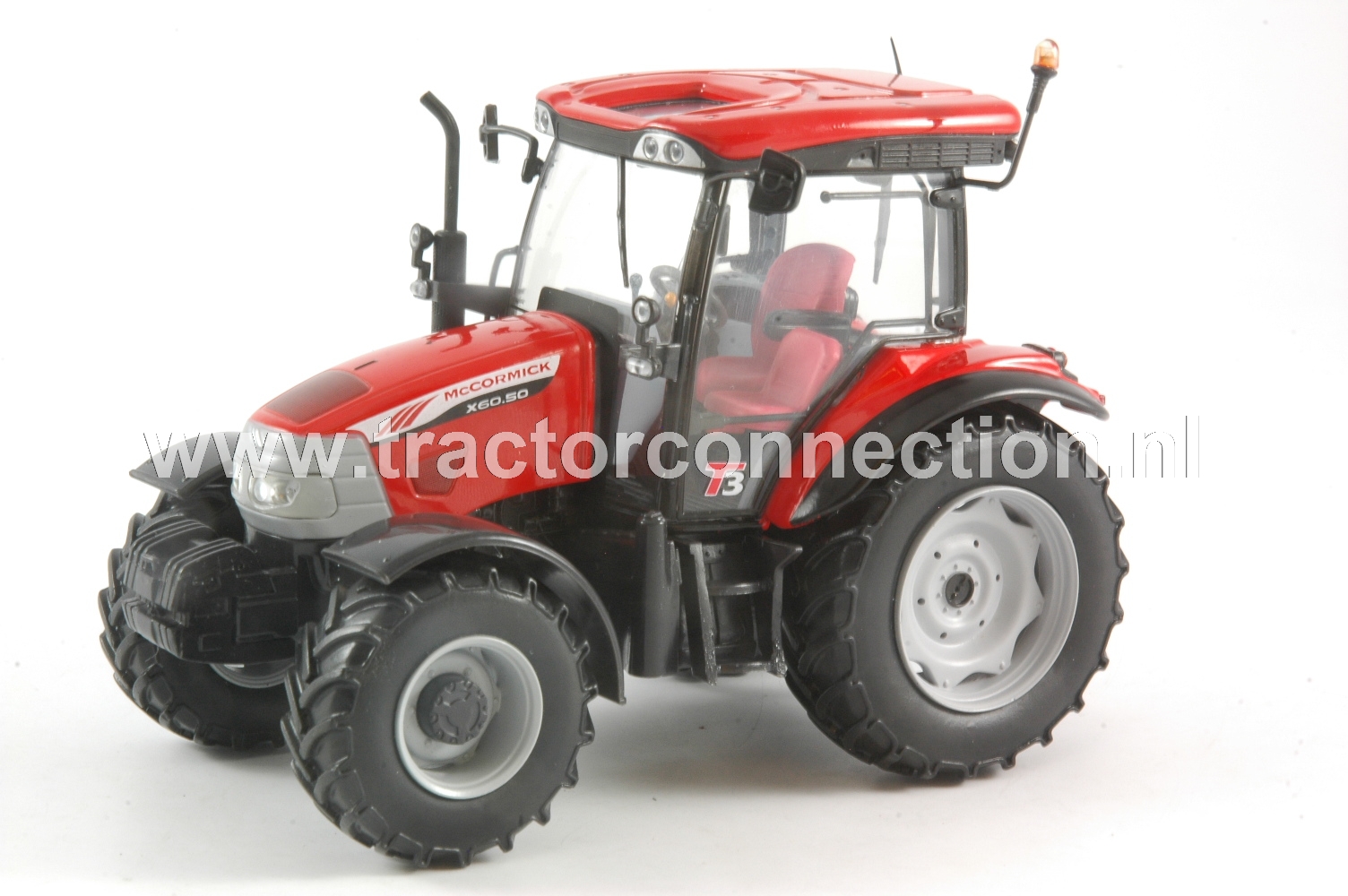 Mc Cormick X60.50 van Replicagri. Een zeer gedetailleerde trekker die overwegend van metaal gemaakt is. Er worden een afneembare gatenbalk, pen voor in het frontgewicht en achtertrekhaak bij geleverd. Ook wordt een afneembare in lengte verstelbare topstang mee geleverd. De vooras is fusee gestuurd.