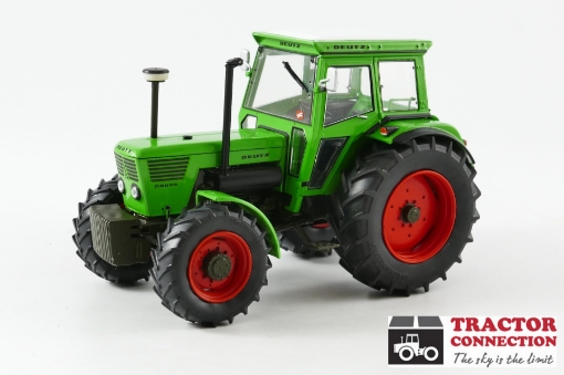 Deutz 8006. Super gedetailleerd. De trekker heeft een beweegbare achterhef die ook is voorzien van afneembare gatenbalk en verstelbare topstang. Afneembaar frontgewicht wordt bijgeleverd.