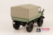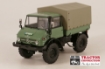 Unimog 406 met huif (U84). Een zeer gedetailleerde miniatuur die vrijwel volledig van metaal is gemaakt. Cabinedeuren kunnen open, het laadplatform kan kippen en de schotten kunnen scharnieren. De huif is afneembaar.