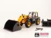 JCB 542-70 Agri Loadall telescooplader. Komt met schepbak, pallet lepels en een grijpbak. De bak en de vorken zijn eenvoudig uitwisselbaar. Het chassis en de laadarmen zijn van metaal. De bovenbouw, de bak en de vorken zijn plastic.