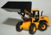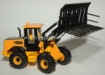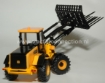 JCB Farmmaster 416s. Knikshovel met grondbak en silagevork. De bak en de vork zijn eenvoudig uitwisselbaar. Het chassis en de laadarmen zijn van metaal. De bovenbouw, de bak en de vork zijn plastic.