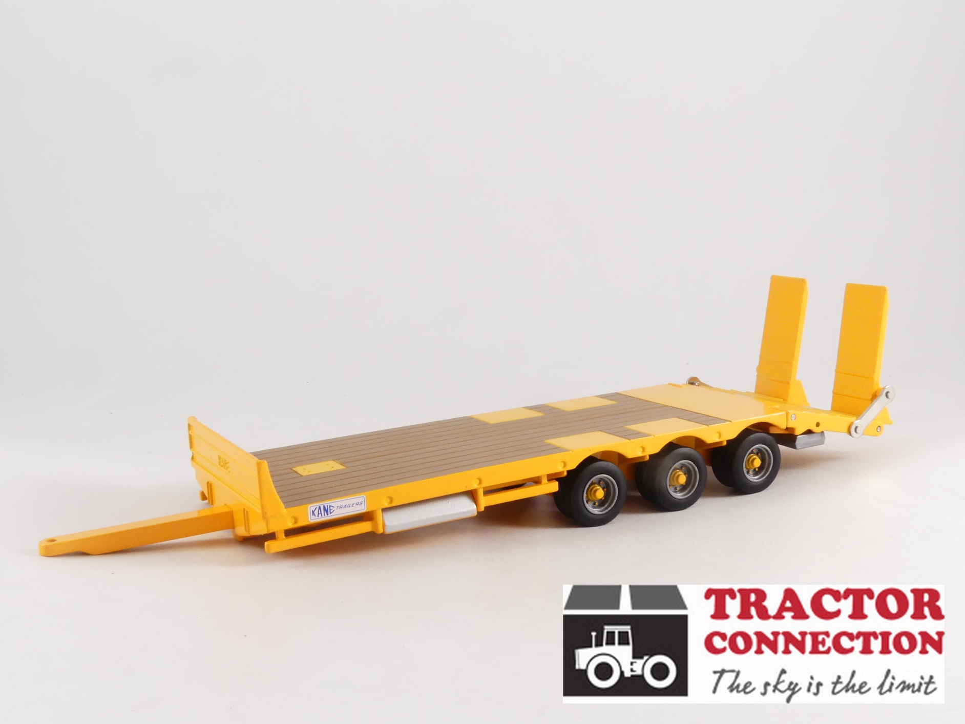 Kane oprijwagen. Een robuuste, volledig metalen wagen om trekkers of werktuigen mee te vervoeren. De laadbruggen kunnen opklappen en de drieassige wagen past achter iedere trekker met een pin als trekhaak.Een mooie trailer voor een mooie prijs!