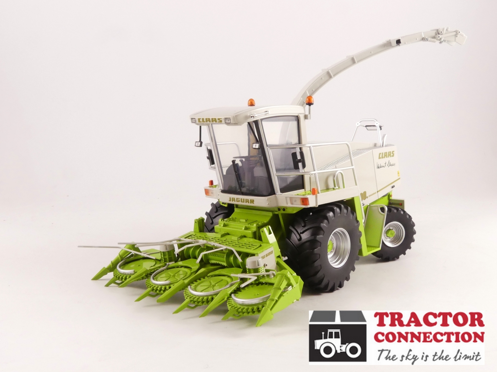 Claas Jaguar 10.000th met RU600 maisbek. Vrijwel volledig van metaal. Het voorzetstuk is makkelijk afneembaar en kan heffen en zakken. En de maisbek kan opklappen in transportstand. De achterwielen kunnen sturen en de blaaspijp kan bewegen. Jubileum model met de handtekening van Helmut Claas!
