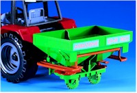 De spuitbomen klappen in twee delen uit en kunnen heffen en zakken. De trap kan uitklappen en de machine kan ook echt spuiten door water in de tank te doen en te pompen met de knop op het mangat.Past achter alle Bruder trekkers.
