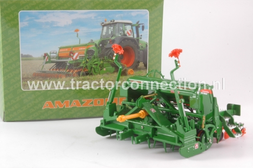Amazone KG/AD zaaicombinatie. Bestaat uit een KG rotorkopeg en opgebouwde AD zaaimachine. De machine is zeer gedetailleerd. De kopeg heeft en looprol met berubberde ringen en de zaaimachine is uitgerust met schijfkouters. De markeurs kunnen opklappen. De machine heeft een Siku compatibele hefinrichting maar past alleen aan de trekker als u bereid bent de aftak-tussenas op te offeren.