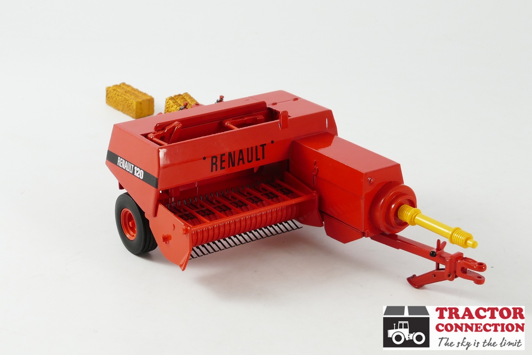 Renault 120 hogedruk pers. Een mooi gedetailleerde miniatuur die wordt geleverd met twee balen. De pickup kan bewegen en de touwkamer kan open. Is vrijwel helemaal van metaal.