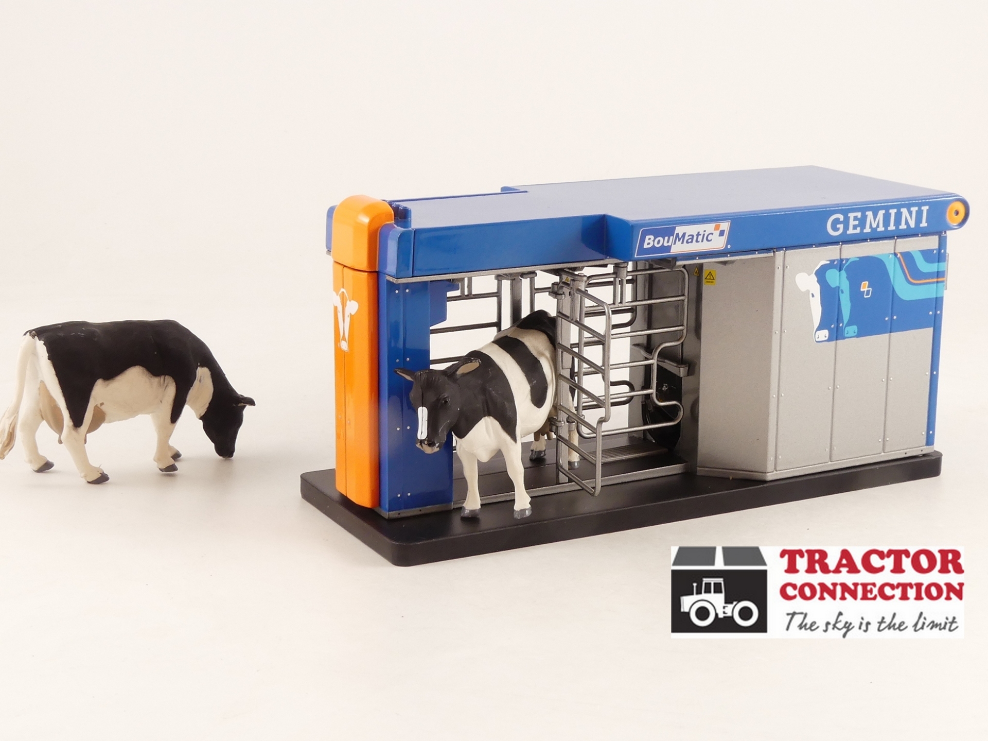 Boumatic Gemini melkrobot van AT-Collections. Geen omkijken meer naar het melken van uw koeien op de miniatuur boerderij!. Hekjes kunnen open en ook de deur van de "machinekamer" kast kan open. Voorzien van vrijwel alle details.