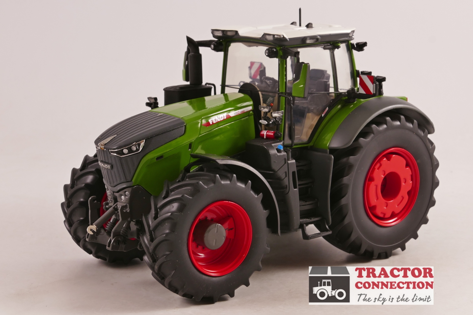 Fendt 828 Vario. De trekker is goed gedetailleerd, volledig glas in de cabine, volledig cabine interieur en fusee gestuurde vooras. Past bij de meeste Britains en Siku en sommige UH werktuigen. Heel geschikt als kinderspeelgoed, maar ook mooi voor de verzamelaar.