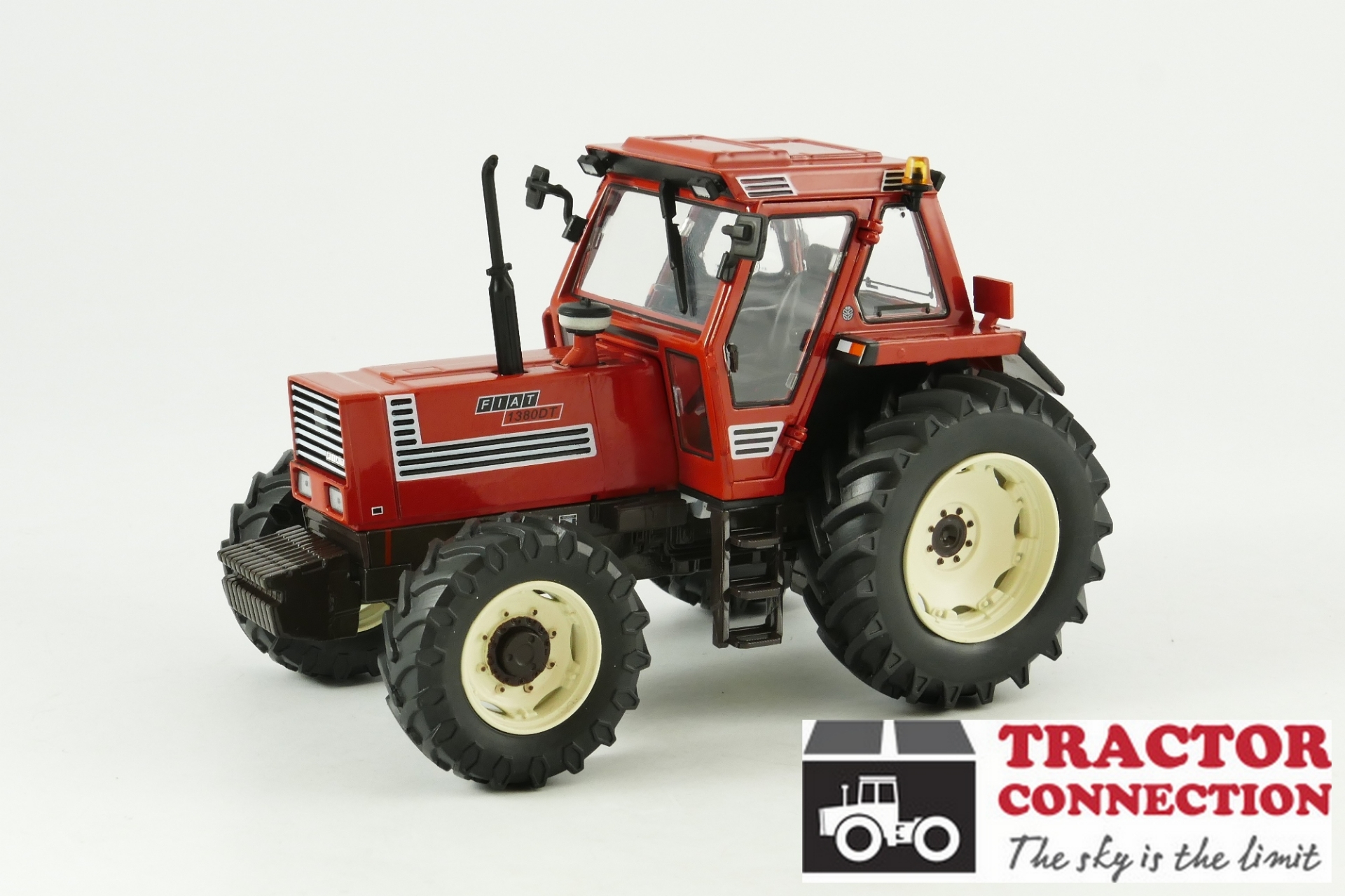 Fiat 1180 DT van Replicagri. Een zeer gedetailleerde trekker die overwegend van metaal gemaakt is. Er wordt een in lengte verstelbare topstang mee geleverd. De vooras is fusee gestuurd en de cabinedeuren kunnen open. Aan de hefinrichting passen Siku compatibele werktuigen. Frontgewicht en front hef zijn uitwisselbaar.
